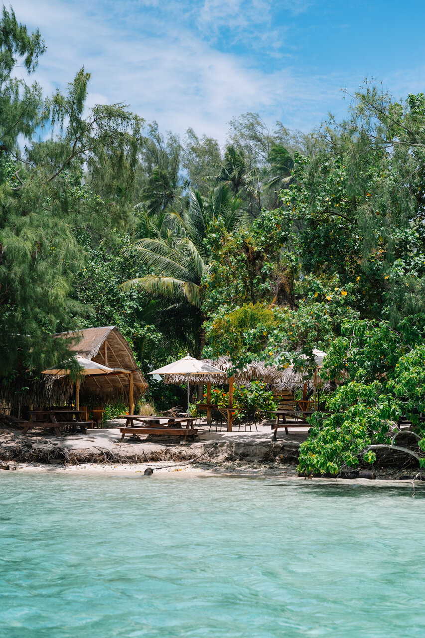 「ココ・ビーチ・モーレア(Coco Beach Moorea)」は、「モツ・ティアフラ(Motu Tiahura)」と呼ばれる小島にあるレストラン。モーレア島の本島からシャトルボートで約10分でアクセスでき、ランチのみの利用も可能です。