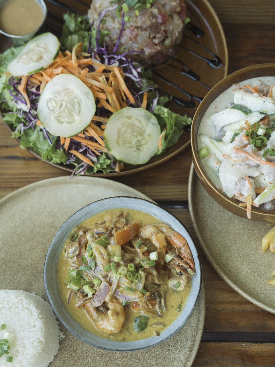 ここのお店のポワソン・クリュは、生マグロをライムとココナッツミルクで和え、ごはんと一緒にいただくスタイル。クリーミーでありながらさっぱりとしていて、癖になる味わいです。