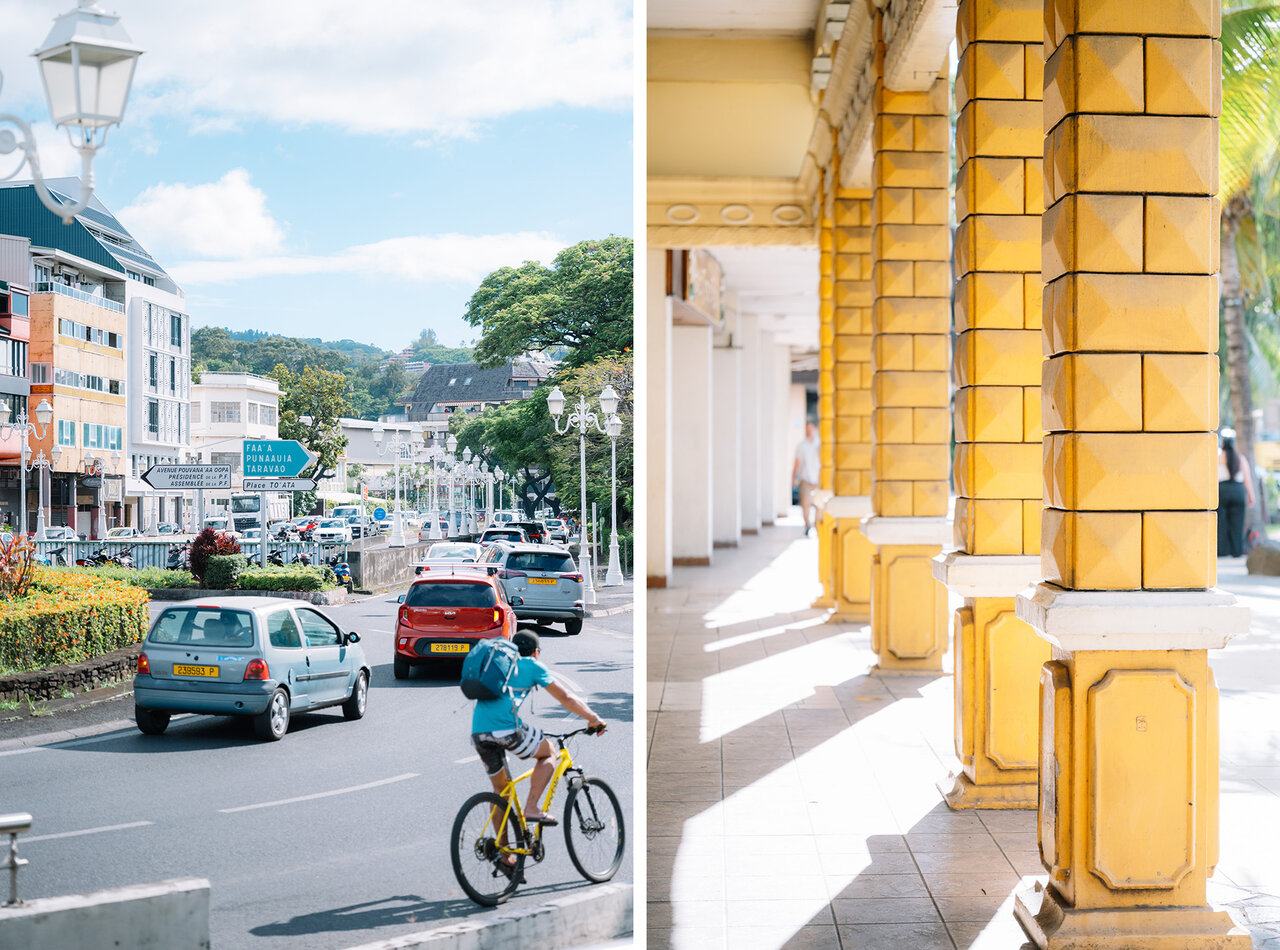 「メルシー」とフランス語の挨拶が飛び交う、活気あふれるフレンチポリネシアのシティセンター。タヒチといえば水上バンガローのイメージが強かったのですが、ローカルの人たちが実際に暮らす街の風景を見ることができて、嬉しくなりました。