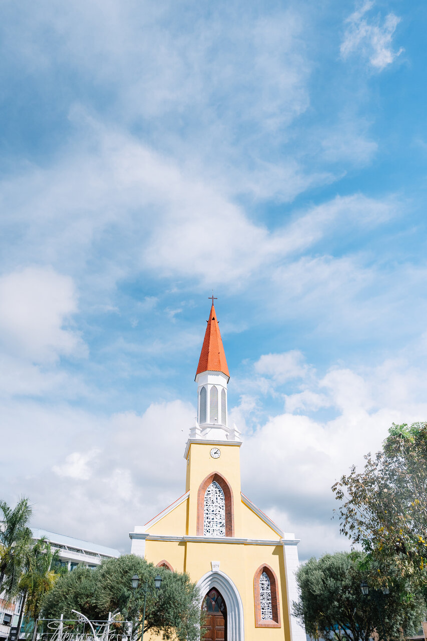 赤いとんがり屋根が象徴的な街のシンボル「ノートルダム大聖堂」。パペーテの中心にあり、常に人々が祈りを捧げに訪れています。