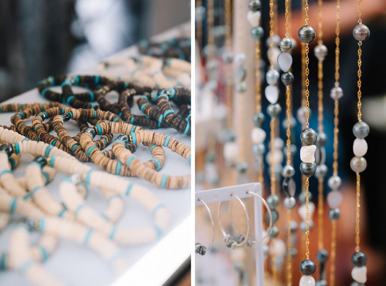 お土産におすすめなのが、タヒチの名産「ブラックパール(黒真珠)」を使ったアクセサリー。ブラックパールは、貝が生み出す天然の色で、実は真っ黒ではありません。真珠層に含まれる色の要素と、幾層にも重なった真珠層が生み出す光の干渉によって、グリーンやピーコックなど、深みのある多彩な色合いが生まれます。 パペーテマーケットでは、タヒチ産のブラックパールが比較的手頃な価格で販売されています。