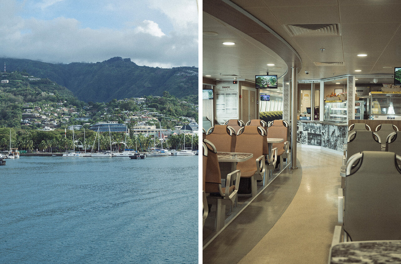 118の島々からなるタヒチでは、フェリーや飛行機で島から島へ移動します。今回訪れたモーレア島とタヒチ島の間は、フェリーで約30分とアクセスも良好。便数も多く、タヒチ島から日帰りで訪れることも可能な距離感のため、日常的な交通手段として利用されており、気軽に島旅を楽しめます。
