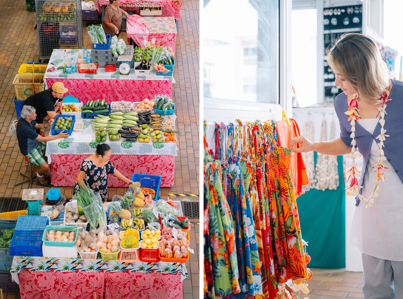 パペーテの中心地にある、カラフルで賑やかな「パペーテマーケット」。タヒチ旅には外せないスポットのひとつです。タヒチ内の諸島から集められた、フルーツや野菜、魚をはじめ、パレオ、宝石、手工芸品、美術品などが、華々しく並びます。