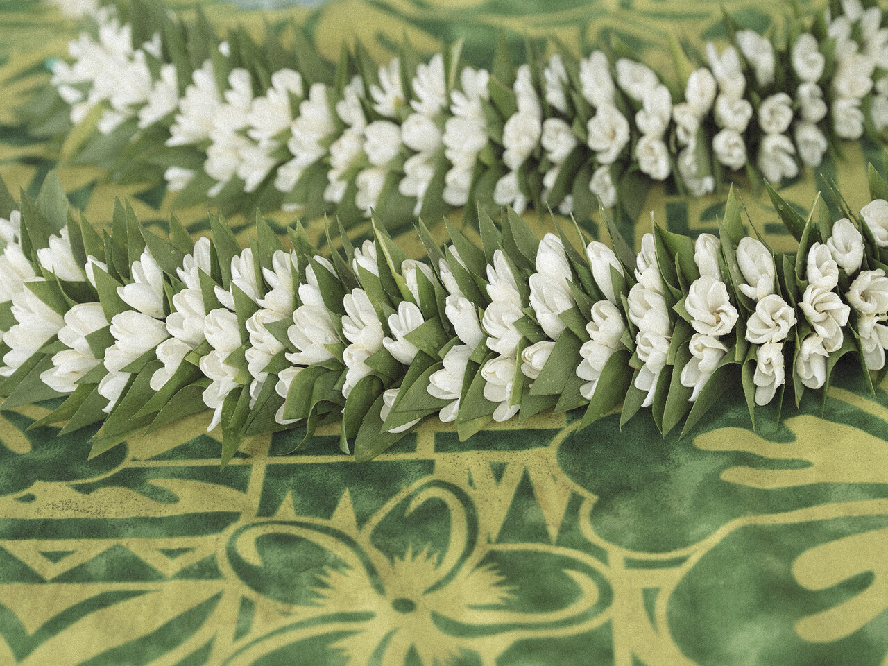 手作りのレイが並ぶお店では、タヒチの国花であるティアレの花に出会えることも。ふわっと広がる、やさしく甘い香りに惹きつけられます。