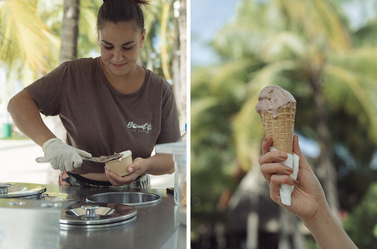 メニューはすべて、タヒチ産ココナッツミルクを使ったヴィーガン対応のアイスクリーム。ココナッツは、食をはじめ美容や日用品にまで幅広く使われ、タヒチの暮らしに欠かせない存在です。