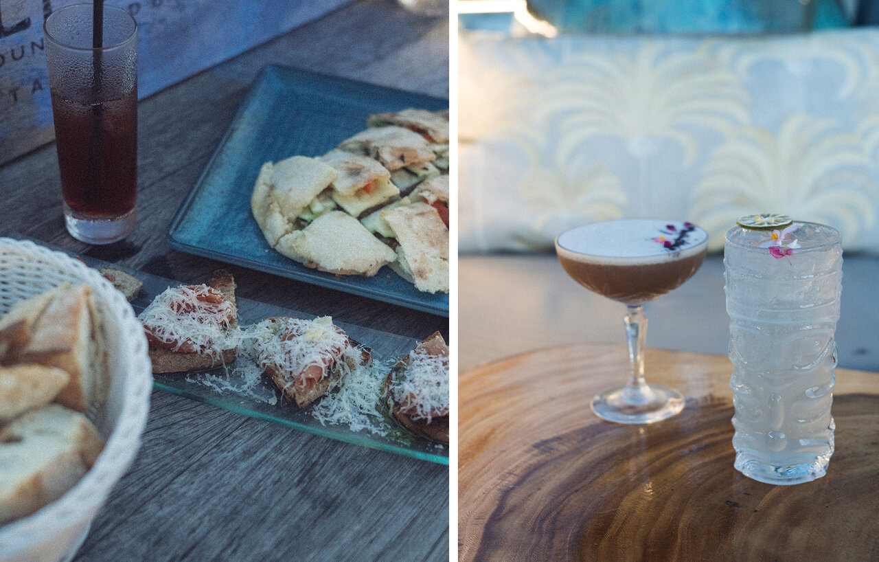 ブルスケッタやパニーニ、チーズ&ハムの盛り合わせなど、カクテルやローカルビールと相性の良いメニューが揃います。