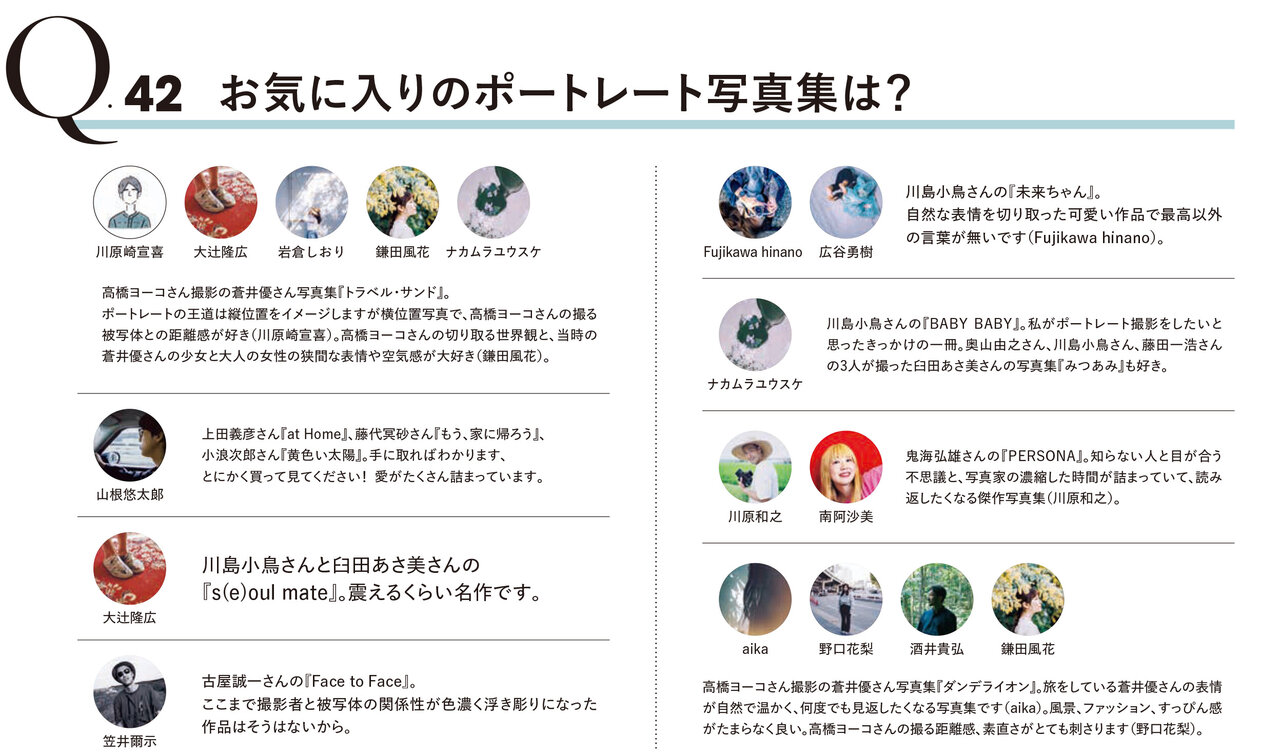 人にカメラを向けるからこそ、迷いはなくしたい。自分の写真をちゃんと好きでいたい。そのためにどうするか?「答え」はここにあります。写真家や俳優、モデルなど41名が答えた、全45問のQ&A特集です。