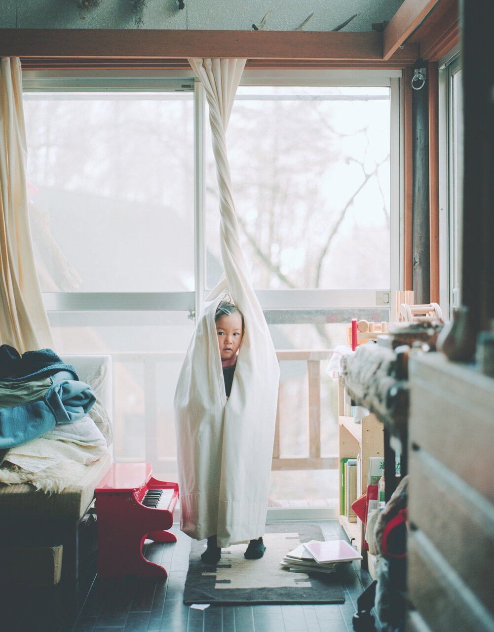 「丁寧でもなく、無理せず、見栄を張らず、気取らない自分らしい暮らし。八ヶ岳南麓での生活は、今年で18年目になります。一年を通じて晴れの日が多かったり、水が湧き出る水源が近くにあったり、八ヶ岳や南アルプスがそびえていたり…地元の風土、人々の温かさなど豊かな世界が当然のように目の前にあることに安心感を抱くことができます。移住当初は、師匠の元を離れて写真を生業にしていくことへの不安や家族を養うプレッシャーが大きかったのですが、支えてくれる方や価値観が同じ友人などとの出会いに恵まれ、さまざまな方々の影響を受けながら日々勉強してきました。この場所に根を張れるように地元の行事などにもできる限り参加し、今では伝統ある祭りなどにも少しずつ受け入れてもらっています。僕はメインとなる撮影ジャンルを聞かれると、ハレとケの“ケ”(日常)の写真と答えるのですが、日常(足元)にこそ素敵な心を動かされる瞬間があると信じて、ずっと撮り続けています。シャッターを切りたくなるのは、子供や妻のふとした表情が美しく見えたり、壁に西日があたっていたり…見慣れた日常の中でも心が揺さぶられる時。撮ろうと思って作ったり、無理やり撮るということはありません。撮りたいと思う瞬間が来たら、撮ります。特別なことを求めなくても、普段の暮らしや日常を淡々と過ごしていくだけで十分だと思うからこそ、小さなほっとする瞬間や、胸が締め付けられる瞬間を撮りたいのです」。