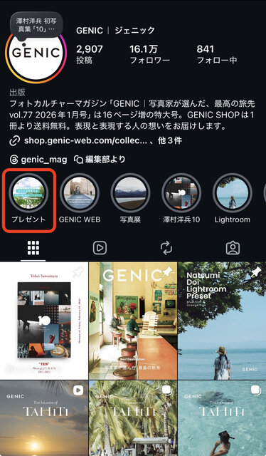 GENIC Instagram @GENIC_mag をフォローし、「PHOTOGRAPHER'S EYE 改訂完全版」プレゼントのストーリーズ投稿に「応募します」とコメントしてください。