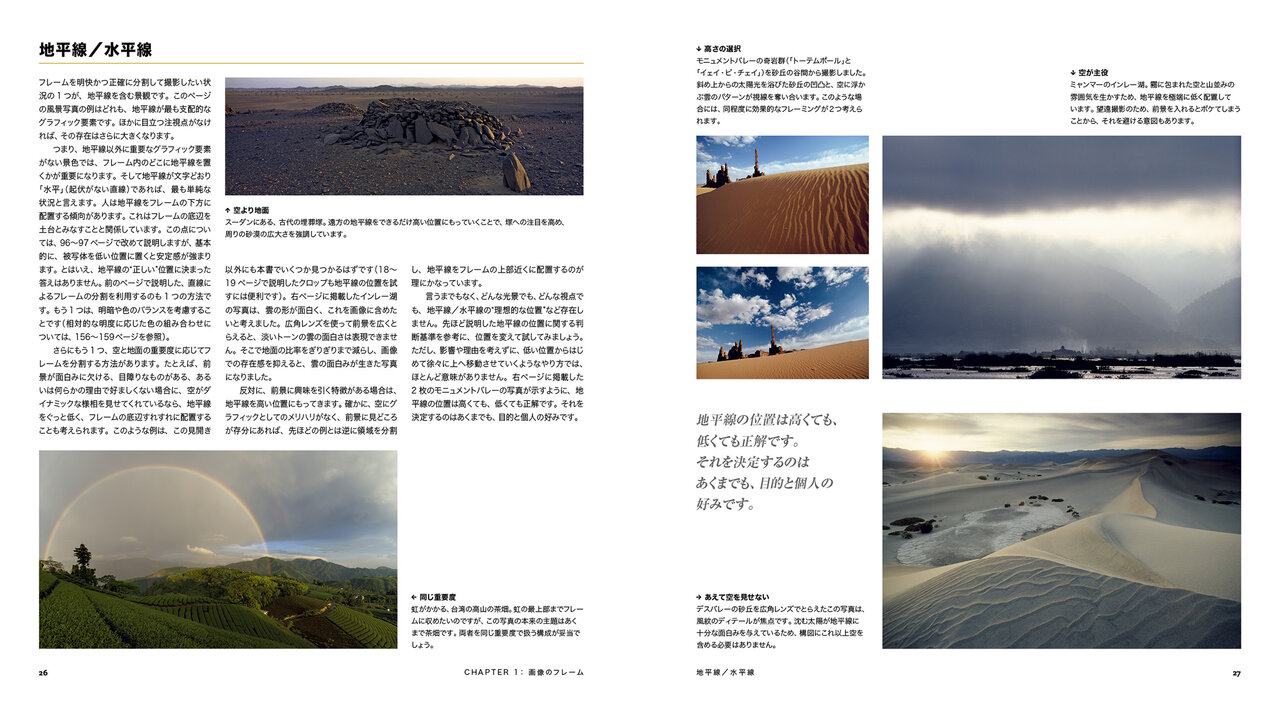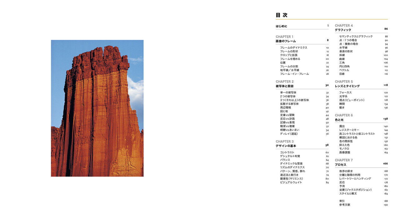 デザインの基本要素、レンズとタイミング、色と光といったトピックを1つずつ丁寧に取り上げ、さらに、原則にとどまらず「その破り方」と「破る理由」をひも解いていきます。