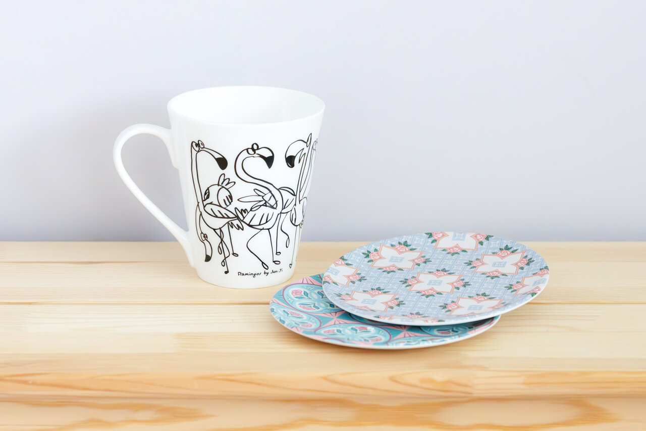 カトンで人気の有名セレクト雑貨店「Cat Socrates」のプラナカン柄のプレート2枚組と、シンガポールの特別な支援を必要とするアーティストの作品をもとに雑貨やギフトを制作する「The Animal Project」のマグカップをセットで1名様に。