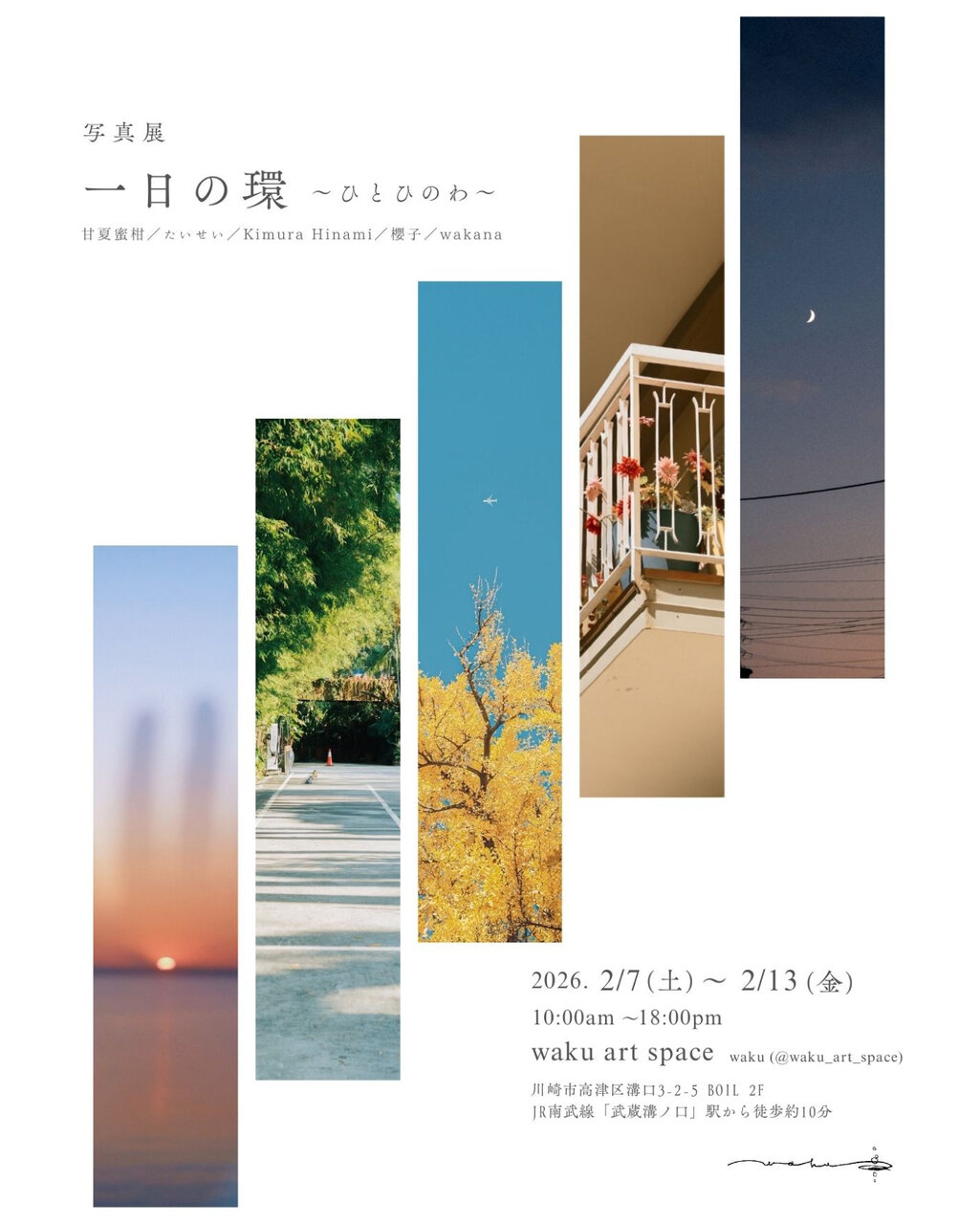 今回は「一日の環」というテーマのもと、5人それぞれの視点で、1日を写真で切り取っています。朝から夜へ、始まりから終わりへ。写真がつながり、環のように巡る時間の流れを、それぞれの感じ方で受け取ってもらえたら嬉しいです。