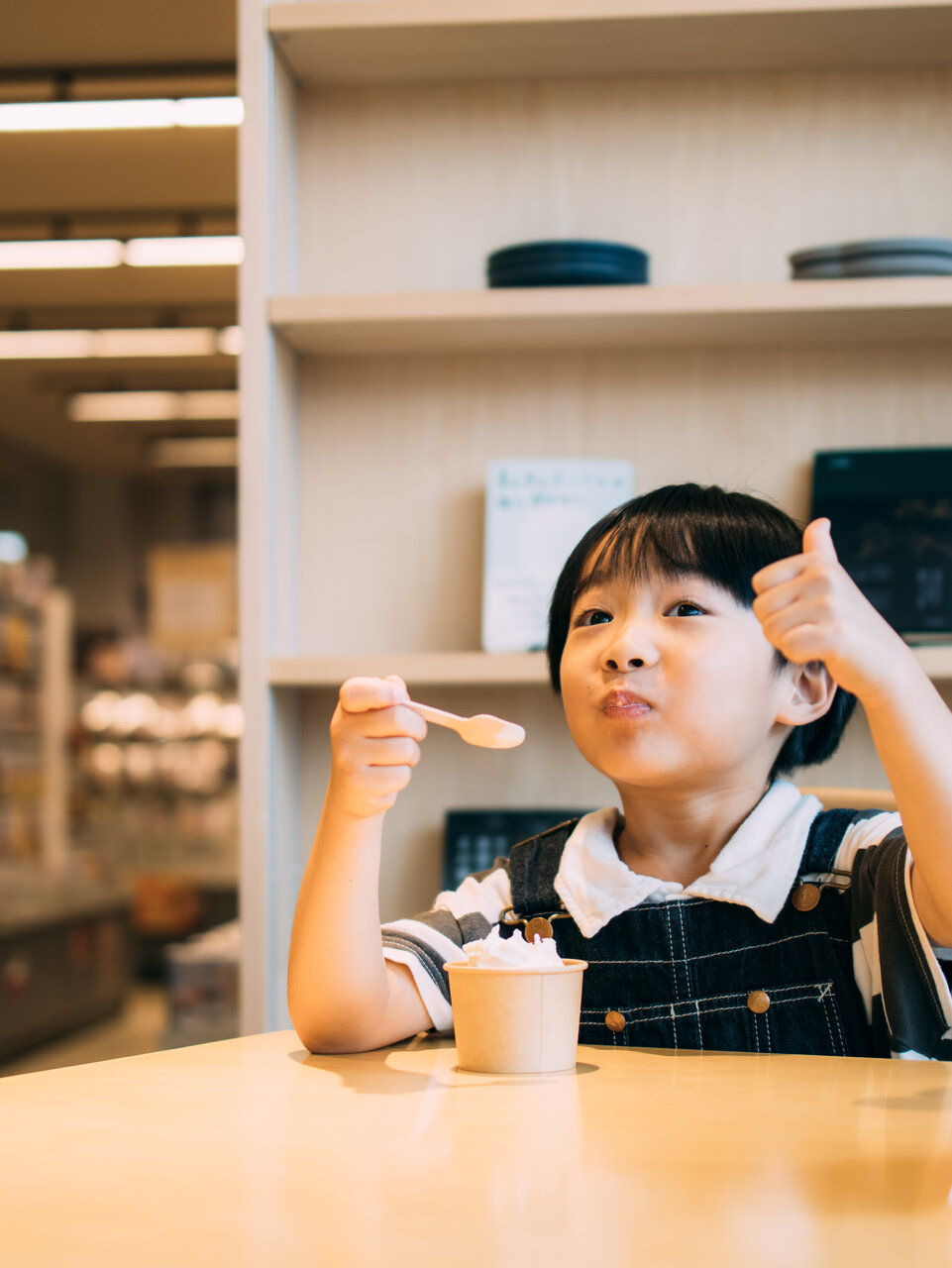 今回は屋内の撮影だったので、奥行きを感じる場所や、本棚越しに撮影をすることで、隠し撮りのような雰囲気を演出して子どもの素の表情を引き出しました。また、R50 Vのカラーフィルター「ClearAmber」を使用して撮影しています。カラーフィルターを使えば、サッと出してサッと動画を撮っても、世界観を保つことが可能です。今回の映像も書店とカフェの雰囲気に合わせた色味で撮影できたおかげで、映像への没入感や質感もグッと上がったんじゃないかなと思います。今回は撮影のために許可を取って撮影しています。子どもの撮影は思わず夢中になってしまいますが、公共の場での撮影はまわりへの配慮も忘れずに。