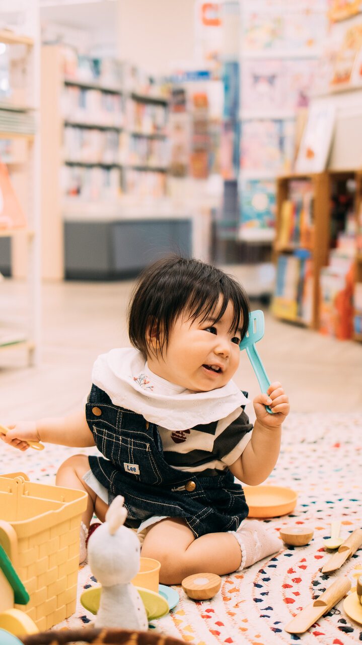 冒頭のこのシーンも少し離れたところからカメラを構えて、よちよちとカメラ中心に2人が歩いてくる姿を狙い、これから2人の本屋さんの中での冒険が始まるワクワク感を表現しました。